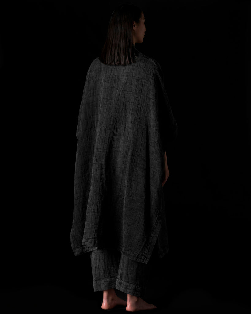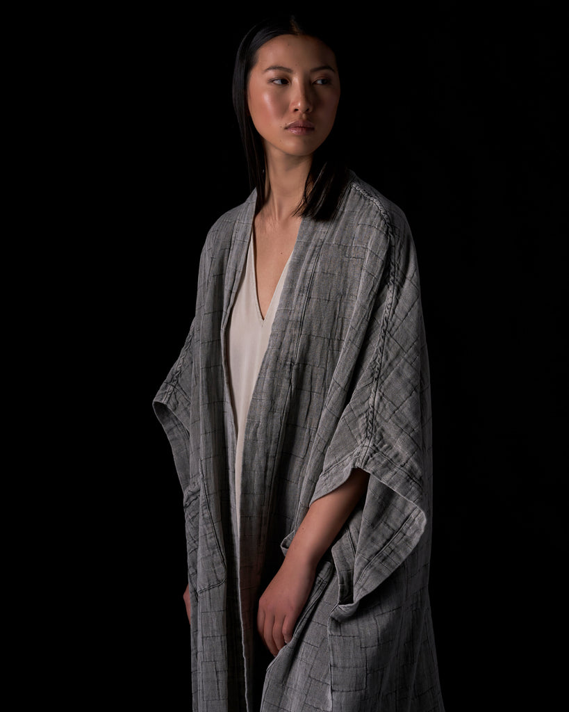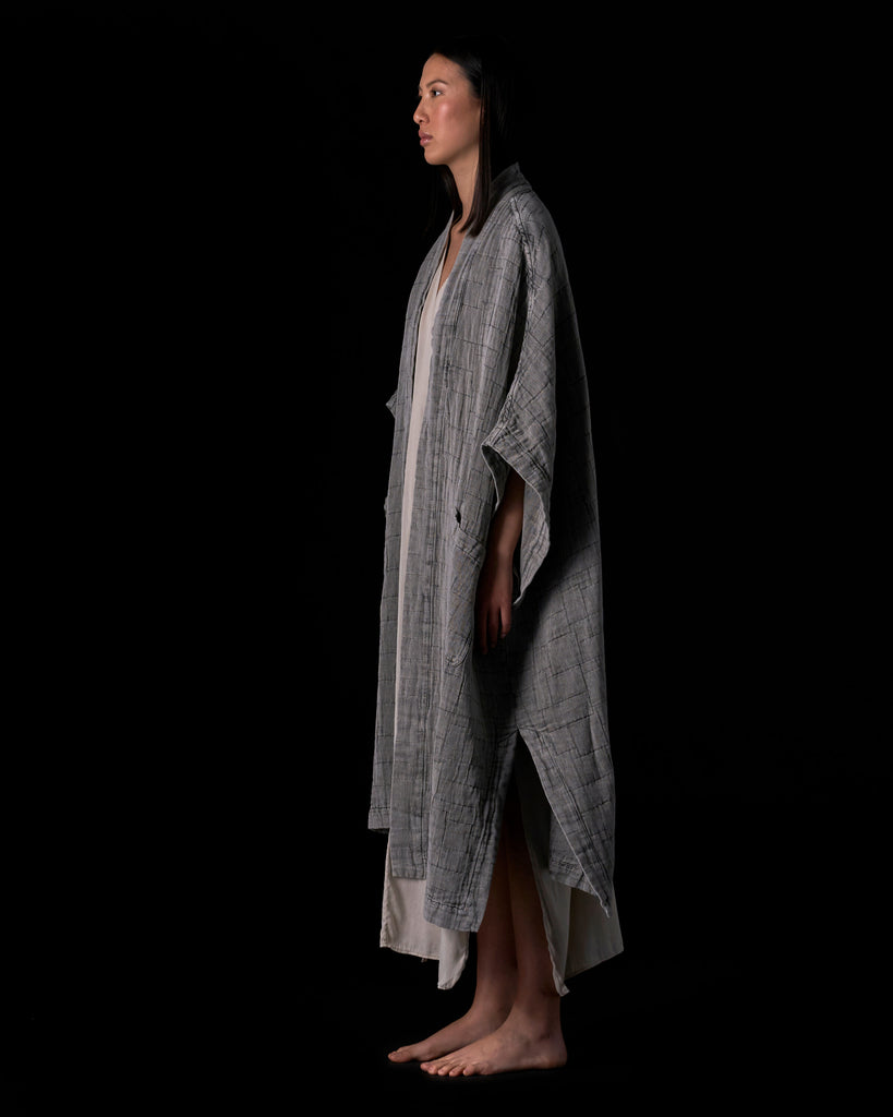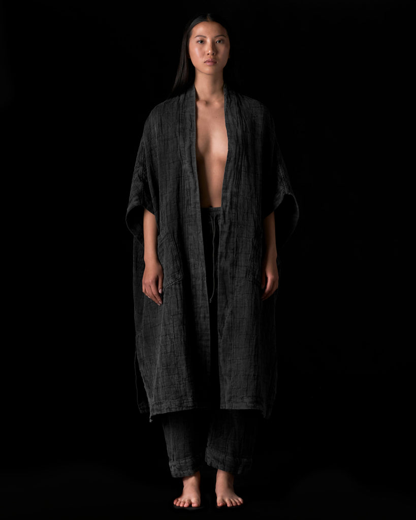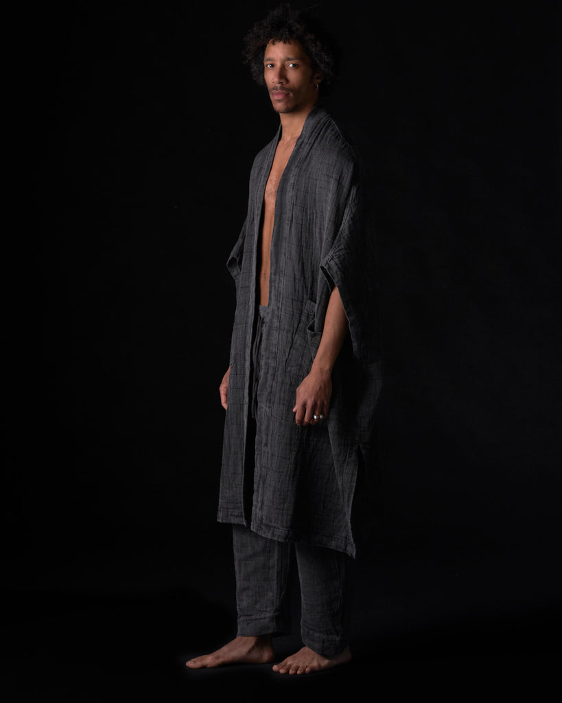 Totum's interpretation of the Kimono is a true blend of style and comfort, perfect for the home and even for the street. The patch jacquard coat features our bespoke jacquard woven by a small family business in Treviso. This soft and quilted coat comes in our signature garment-dye Washed Black and Sandstone colorways. Blur the lines between home and apparel with this designer piece.