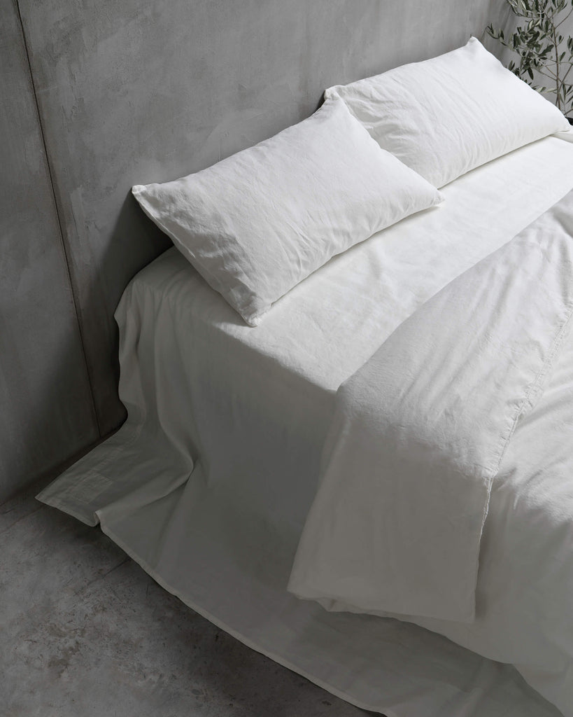 Inspired by heavier weight sheets from the Italian countryside in the 1800s, this unique satin weave was created to give the perfect amount of dull shine and sensual touch. It combines the irregular movement of linen on one side and beautiful cotton satin against the skin. These bedsheets are designed to get better as they age, the more you wash them the softer they get. A simple flat sheet is perfect for the hotter summer months or bundling up in the duvet in winter.